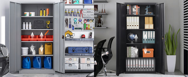 - 【Upgrading Locking System】This metal storage cabinet with locking doors that can be locked with a security upgraded three-point interlock system, bringing increased security to your important items and documents. High quality locking cabinet, suitable for office, home, garage, school. The steel locking cabinet is equipped with two spare keys