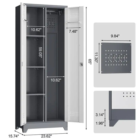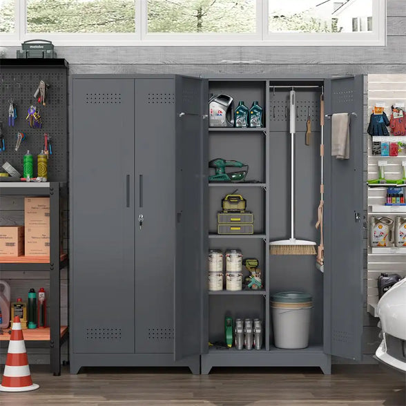 【Metal Cabinet Dimensions】-This tall storage cabinet with 4 small shelves and large storage space allow you to store any size of goods or hanging Tools and supplies.