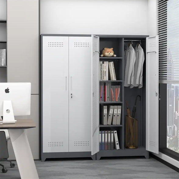 【Durable Construction】-Made of all-steel material and powder-coated,The high lockers storage cabinet with doors and shelves, you can easily organize and access your items while keeping them protected from dust and dirt.