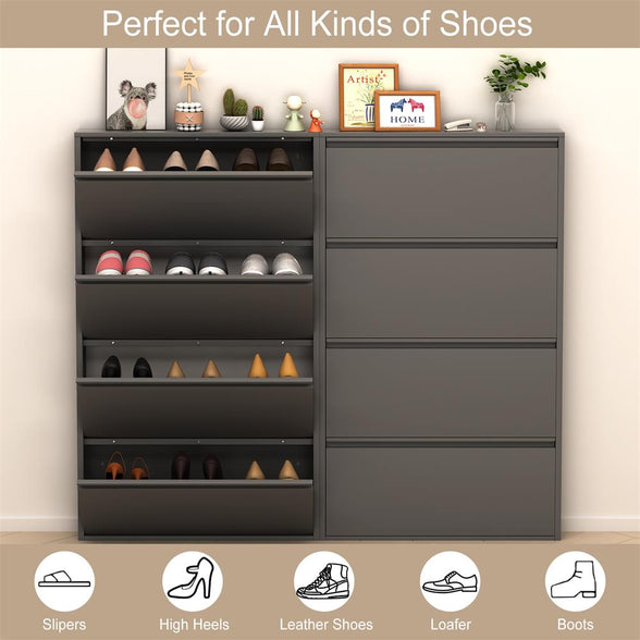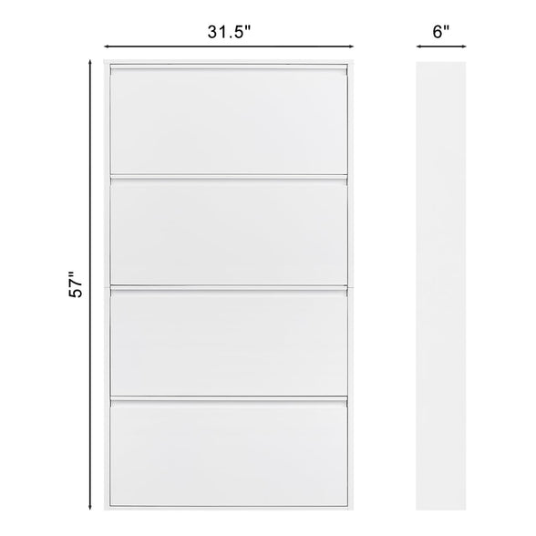 I have been looking for a good shoe rack that doesn’t take up much space and it had to be metal. The IKEA ones are trash and many other wooden ones break easily. I got the four drawer model in white it looks great in my garage wall. It is clean and feels like it just fits in. It’s a little taller than I expected but I can utilize the top drawer while my wife and kids can use the lower ones. If it was a little wider to fit 4 pairs of shoes, then it will be perfect! Took about 1 hour to assemble. Nothing too complicated. One thing that would make it better if it had a complete back.