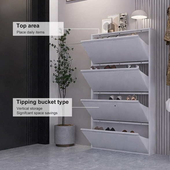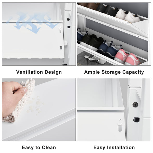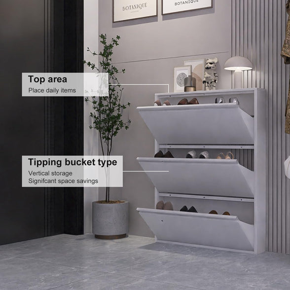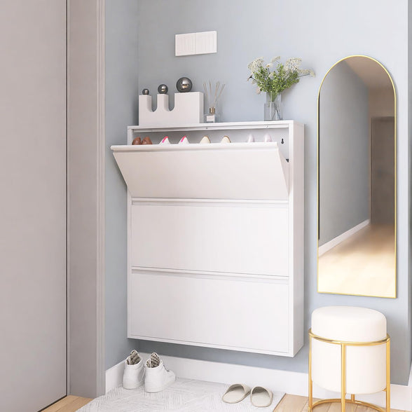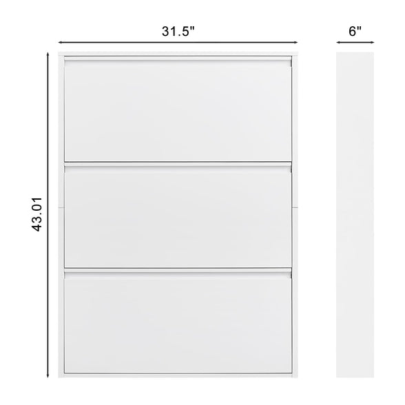GREATMEET Shoe Storage Cabinet with 3 Flip Drawers, Wall Mount Metal Shoe Organizer for Entryway, Flip Drawer Steel Shoe Rack Cabinet for Indoor Shoe Storage