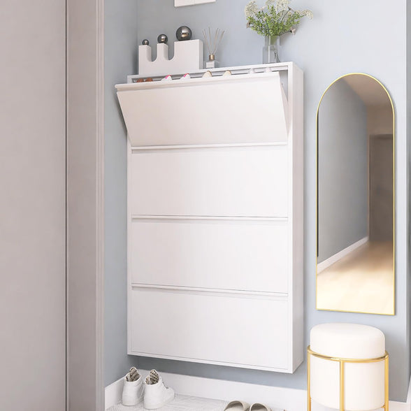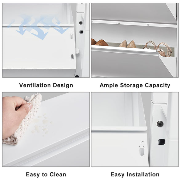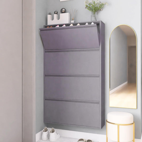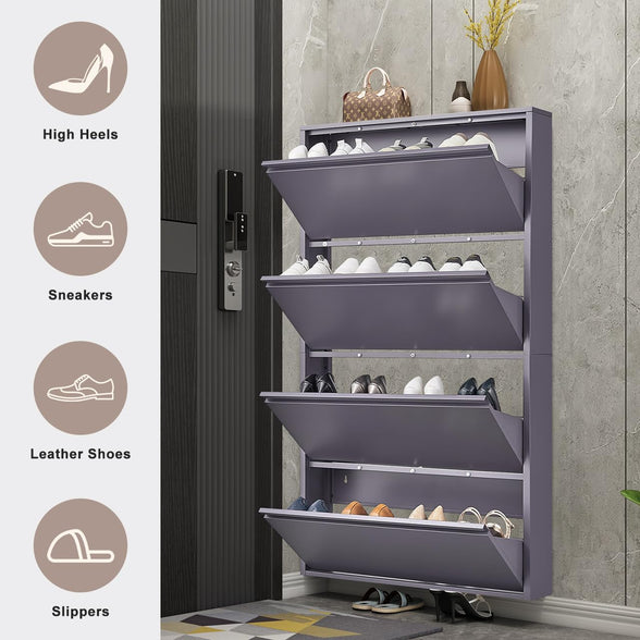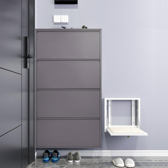 The GREATMEET Metal Wall Mounted Shoe Cabinet is a moisture-proof, easy-to-clean storage solution that is lighter and more stable than alternatives. This wall-mounted cabinet features an anti-toppling design for added security and maximum space savings. Available in two colors with 3 or 4 flip drawers, the cabinet can be customized to best fit your needs. Crafted from durable alloy steel, the cabinet is lightweight yet strong, making it easy to assemble and install. With a large storage capacity, the GREATMEET cabinet is an ideal shoe storage solution that is odorless, easy to clean, and backed by a responsible brand with years of experience.